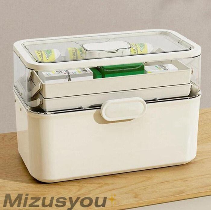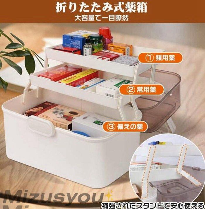 救急箱 薬箱 3層折り畳み式 救急ボックス 薬入れケース ミニケース付き 大容量 密封防水 持ち運び便利 かわいい 災害用くすりばこ 裁縫箱 工具箱 小物入れ