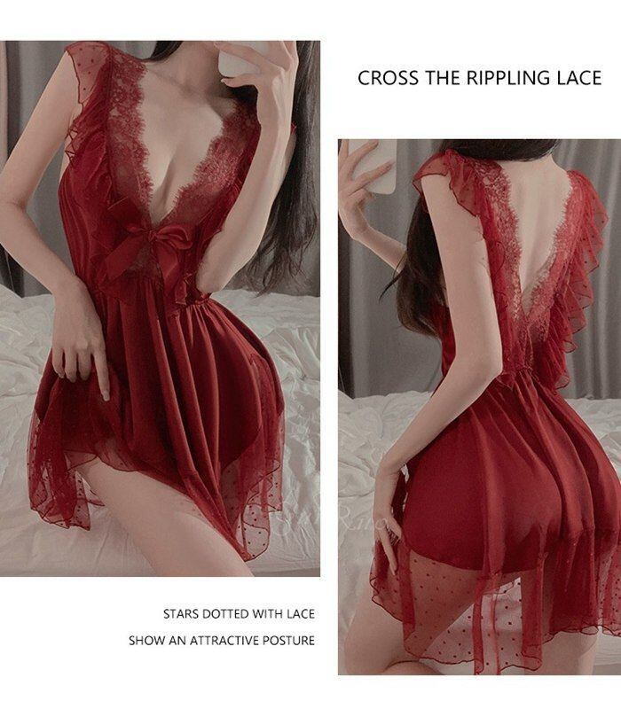 セクシーランジェリー ベビードール Tバック セクシー2点セット 透け透け キャミソール tショーツ 背中ホック付 背中全開可能 美尻 美脚丸見せ 胸元Vライン 美胸魅惑 花柄レース レディース キャミソールドレス オープンブラ xzzhang423 | オキナ商店
