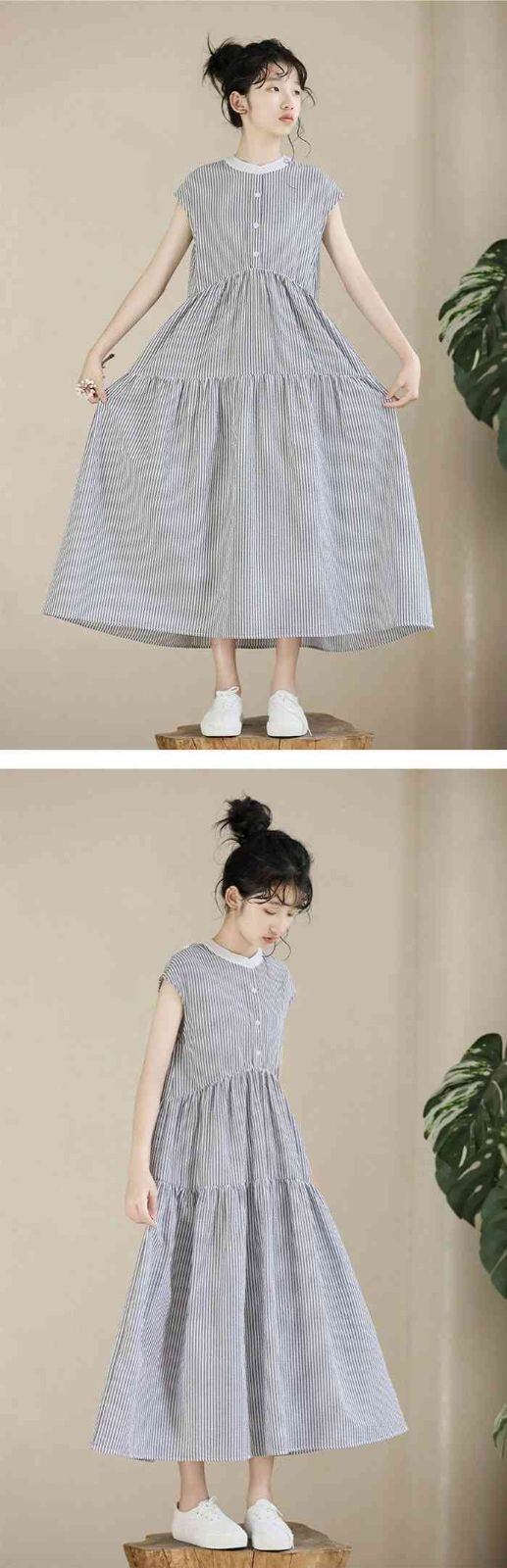 ワンピース 即購入OK ドレス 子供服 女の子 半袖 ストライプ柄 カジュアル フォーマル キッズ ガールズ かわいい きれいめ おしゃれ プリンセス ワンピース ドレス 子供服 春 夏 秋 発表会 入学式 卒業式 140-170cmsjxz69 | オキナ商店