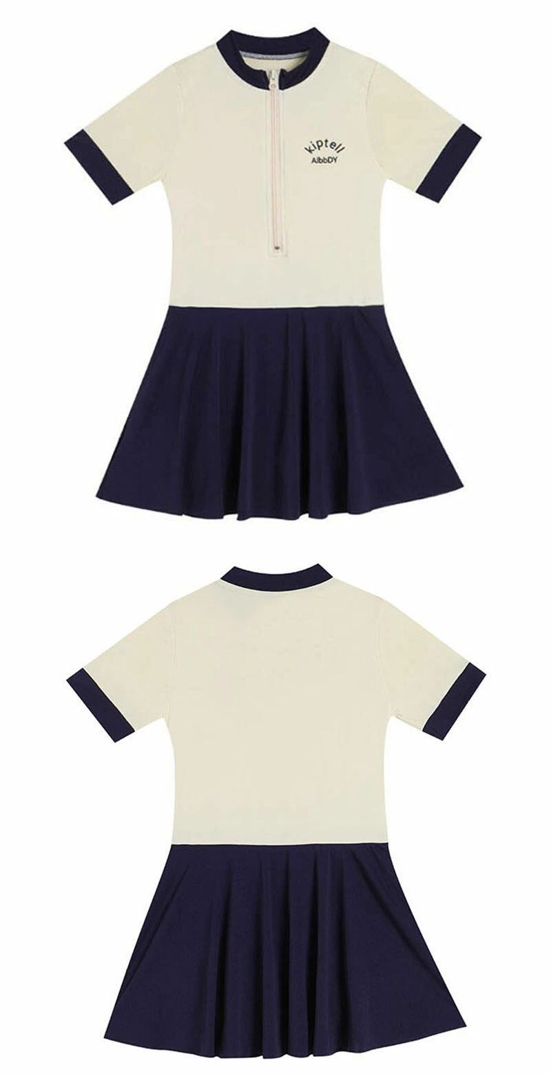 子供用スクール風水着 女の子 ワンピース型スイムウェア セーラー風スカート付き 120〜160cm 着やせ効果あり 可愛いキッズ水着 保守的デザイン UVカット 夏 プール 海 温泉用 女の子向け sjxz64