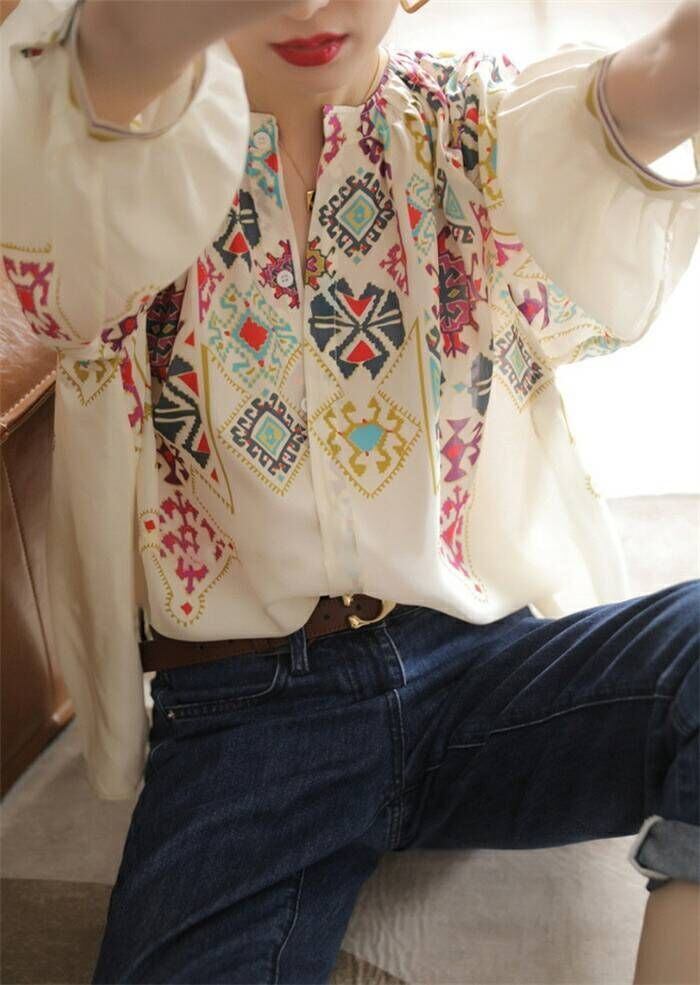 ブラウス 七分袖 花柄ブラウス レディース 7分袖 シャツブラウス ショート丈 花柄 夏 プルオーバー vネック ショート丈 ゆったり チュニック 七分袖ブラウス エスニック風 夏ブラウス ゆったり 花柄 プリント 薄手xzzhang412 | オキナ商店