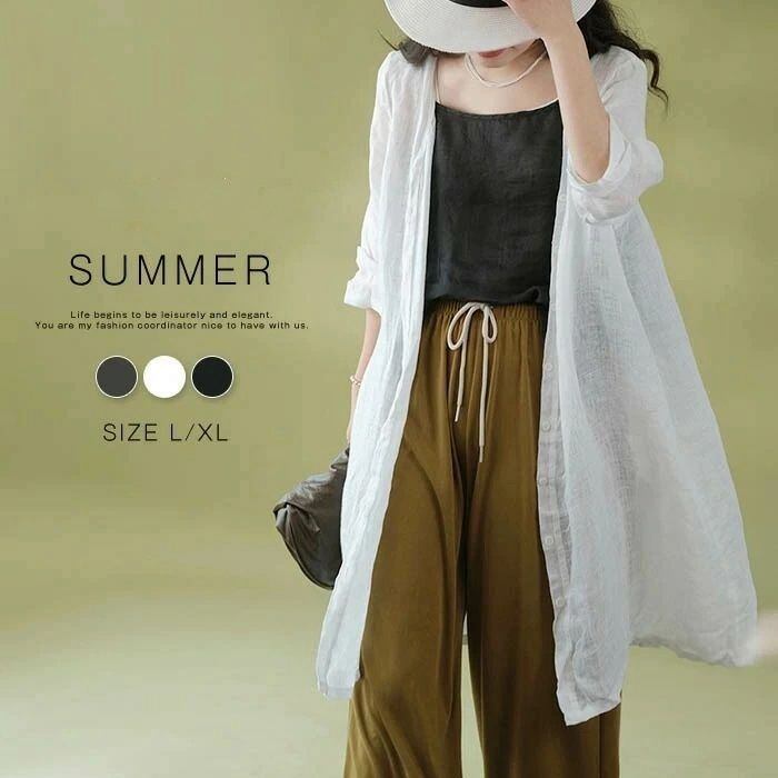 カーディガン レディース ロングカーディガン 綿麻風 uv カーディガン 夏 七分袖 紫外線対策 冷房対策 大きいサイズ ゆったり 体型カバー 無地 透け感 綿麻風カーディガン ナチュラル風 春夏 おしゃれ きれいめ xzzhang414 | オキナ商店