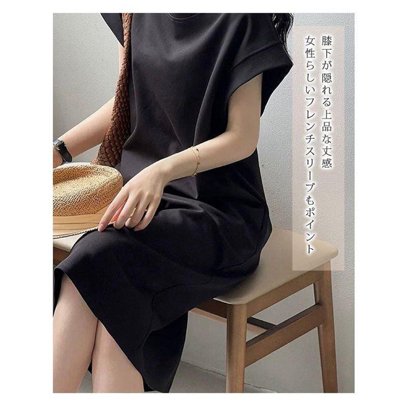 ワンピース 脇見え防止 フレンチスリーブ Tシャツワンピース レディース ミモレ丈 体型カバー 二の腕カバー ゆったり クルーネック 夏 hyxz84