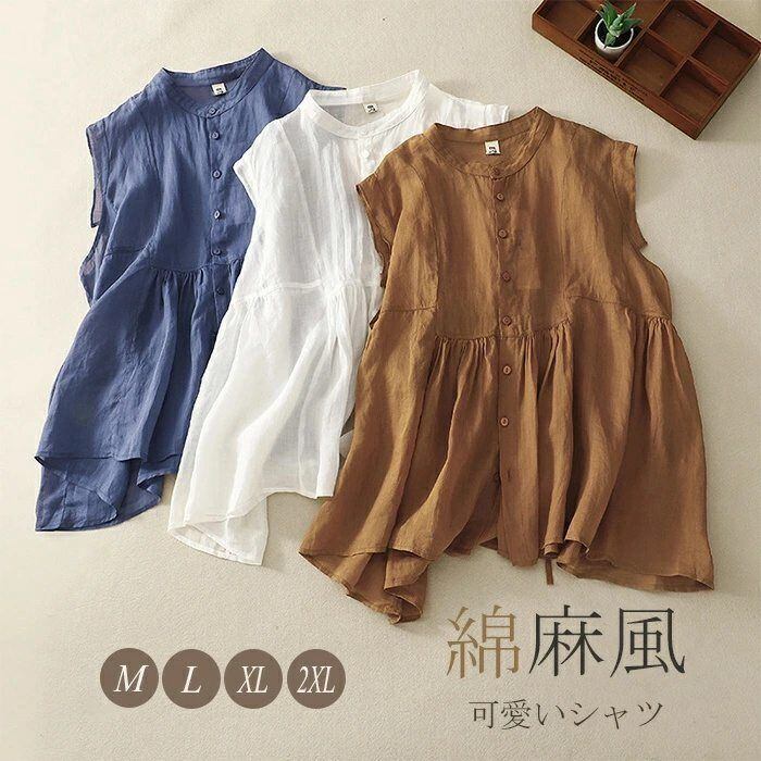 シャツ シャツブラウス レディース 夏 トップス ノースリーブ 半袖シャツ アウター 綿麻シャツ 無地 白シャツ ホワイトシャツ ショート丈 前開け シンプル 綿麻風 薄手 ショート丈シャツ 涼しい 羽織り 可愛い 柔らか xzzhang411 | オキナ商店