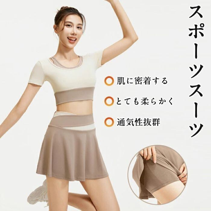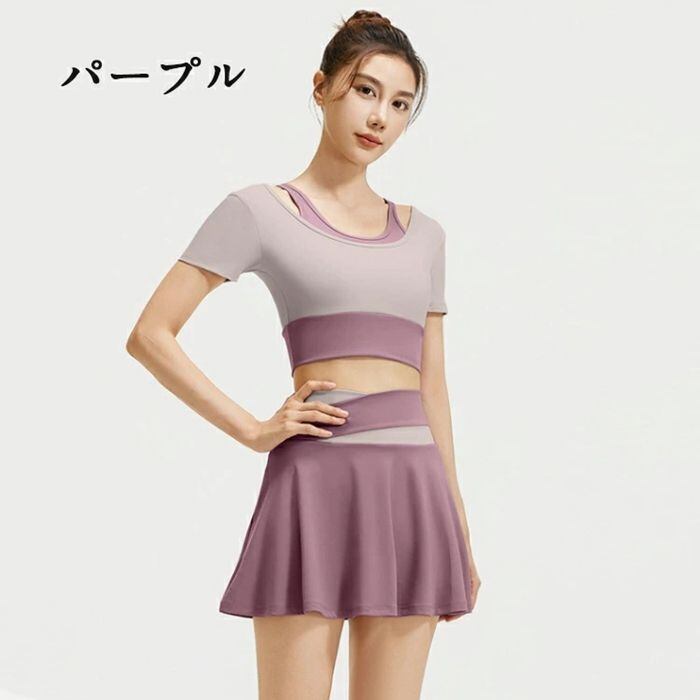 ヨガウェア 体型カバー セットアップ スポーツウェア レディース トップス おしゃれ チュニック ヨガウエア おうちヨガ フィットネスウェア ピラティスウェア 上下セット 半袖 ヨガ ピラティス 送料無料 ヨガウェアxzzhang417 | オキナ商店