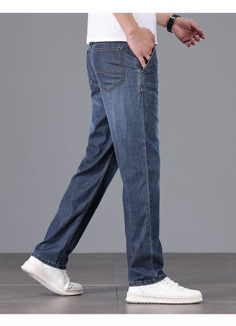 デニムパンツ メンズ 未使用 接触冷感 夏 ジーンズ デニム ストレートパンツ 冷感デニム ゆったり 涼しい パンツ ロングパンツ ひんやり 涼感 薄手 快適 無地 オフィス フォーマル 春 夏 秋 アイスシルク enze02 | オキナ商店
