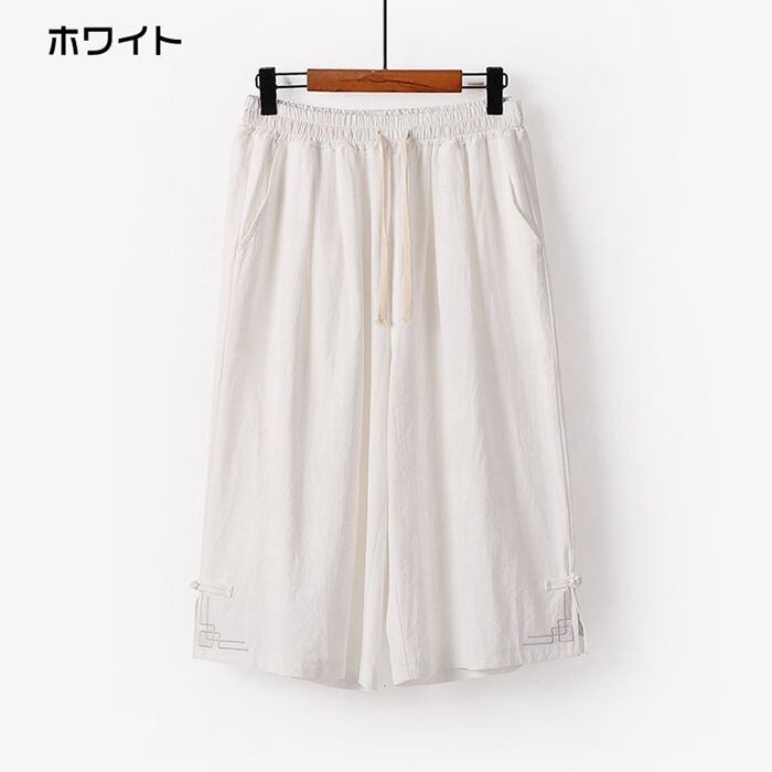 クロップドパンツ 即購入OK ワイドパンツ ボトムス 綿麻風 メンズ 夏 無地 紐付き 通気性 涼しい 柔らかい 大きいサイズ ゆったり カジュアル おしゃれ メンズファッション 部屋着 父の日 zhishihy05 | オキナ商店