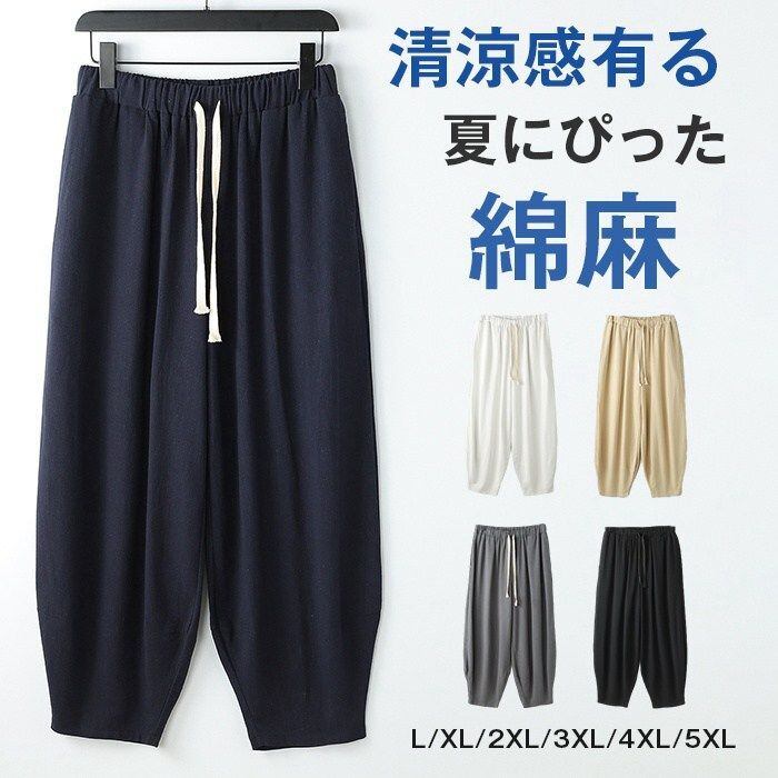 綿麻パンツ 即購入OK サルエルパンツ リネンパンツ メンズ 大きいサイズ 九分丈 ワイドパンツ メンズ ボトムス 大きいサイズ ゆったり 夏 無地 紐付き 通気性 涼しい 柔らかい カジュアル おしゃれ メンズファッション zhishihy16 | オキナ商店