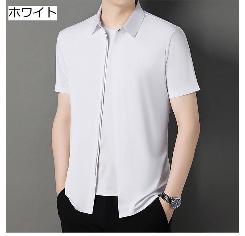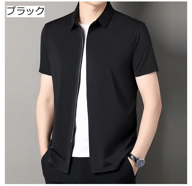 ジップアップシャツ メンズ カジュアルシャツ 半袖 ストレッチ 夏 無地 開襟 シャツ 羽織 トップス 薄手 快適 おしゃれ カジュアル ビジネス フォーマル 通勤 出張 父の日 momai15