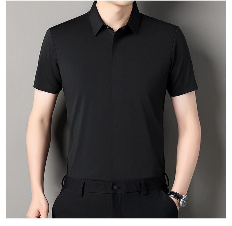 ジップアップシャツ 即購入OK メンズ カジュアルシャツ 半袖 ストレッチ 夏 無地 開襟 シャツ 羽織 トップス 薄手 快適 おしゃれ カジュアル ビジネス フォーマル 通勤 出張 父の日 momai15 | オキナ商店