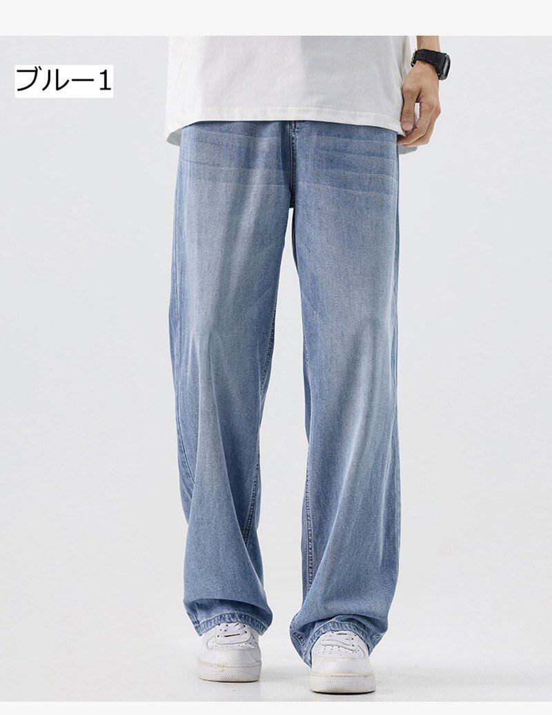 デニムパンツ メンズ 即購入OK 接触冷感 夏 薄手 ロングパンツ ストレートパンツ デニム ジーンズ 冷感デニム ゆったり 涼しい 快適 涼感 無地 おしゃれ カジュアル アイスシルク mbys01 | オキナ商店