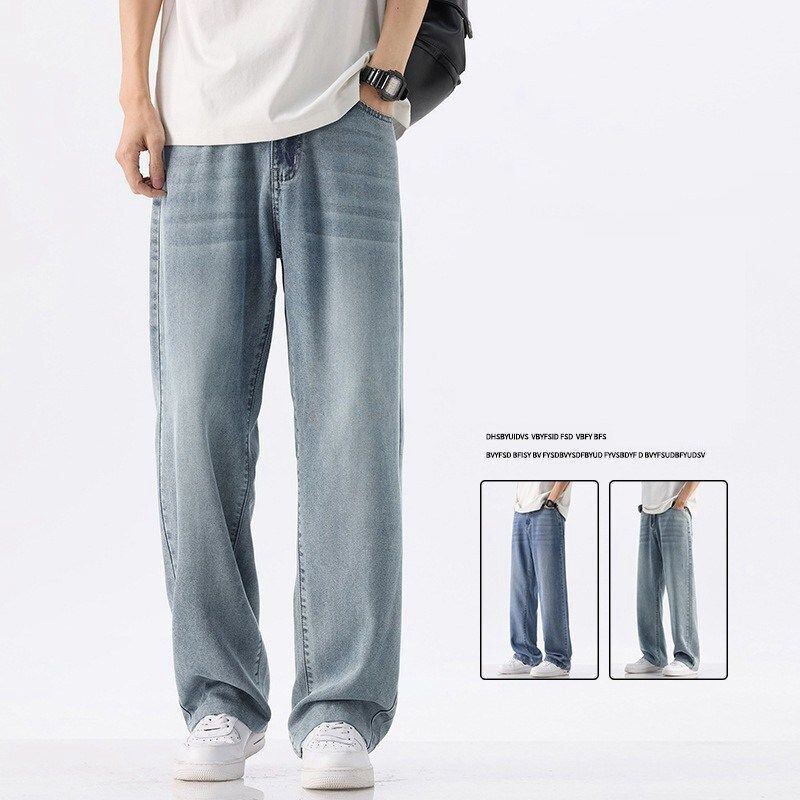 デニムパンツ メンズ 接触冷感 夏 薄手 ロングパンツ ストレートパンツ デニム ジーンズ 冷感デニム ゆったり 涼しい 快適 涼感 無地 おしゃれ カジュアル アイスシルク mbys01