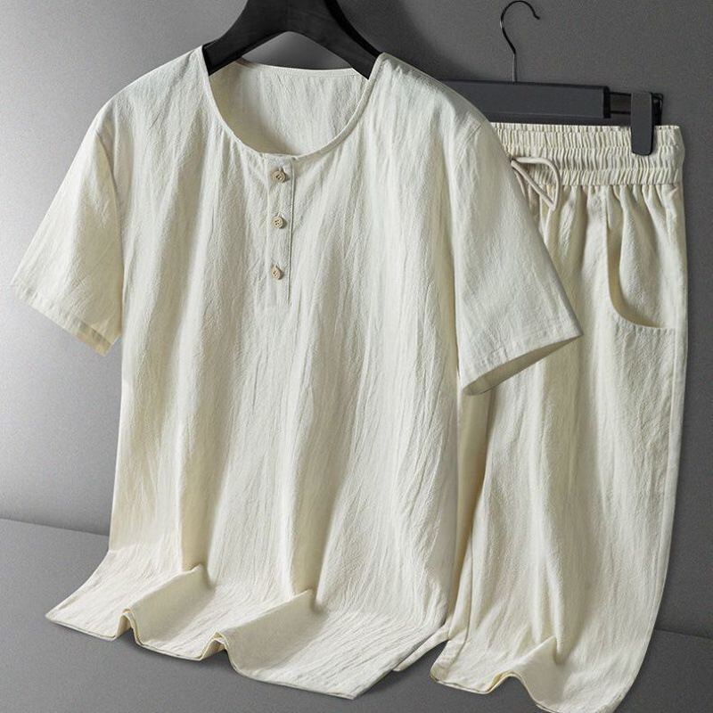 上下セット メンズ 即購入OK 夏 セットアップ 綿麻 半袖 クルーネック tシャツ 無地 ハーフパンツ ウエストゴム トップス ボトムス 薄手 快適 涼しい おしゃれ カジュアル ルームウエア 部屋着 父の日 敬老の日 youli01 | オキナ商店