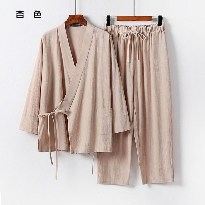 セットアップ 即購入OK 甚平 メンズ 羽織り 夏 綿麻風 大きいサイズ ゆったり 浴衣 上下セット 紐付き 七分丈袖 パジャマ ルームウェア 夏祭り お祭り 花火大会 通気性 無地 涼しい 柔らかい カジュアル 敬老の日 父の日 zhishihy10 | オキナ商店