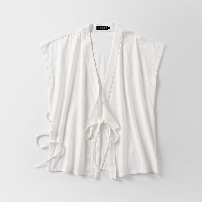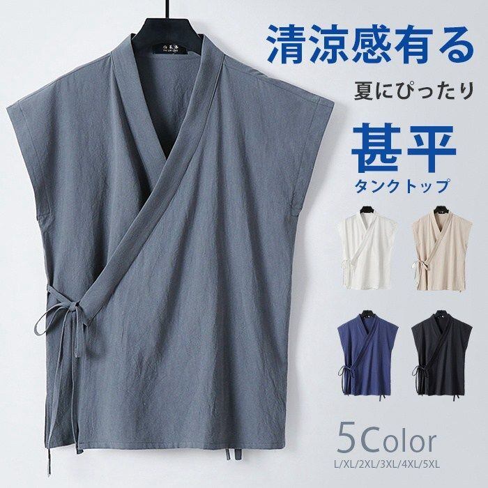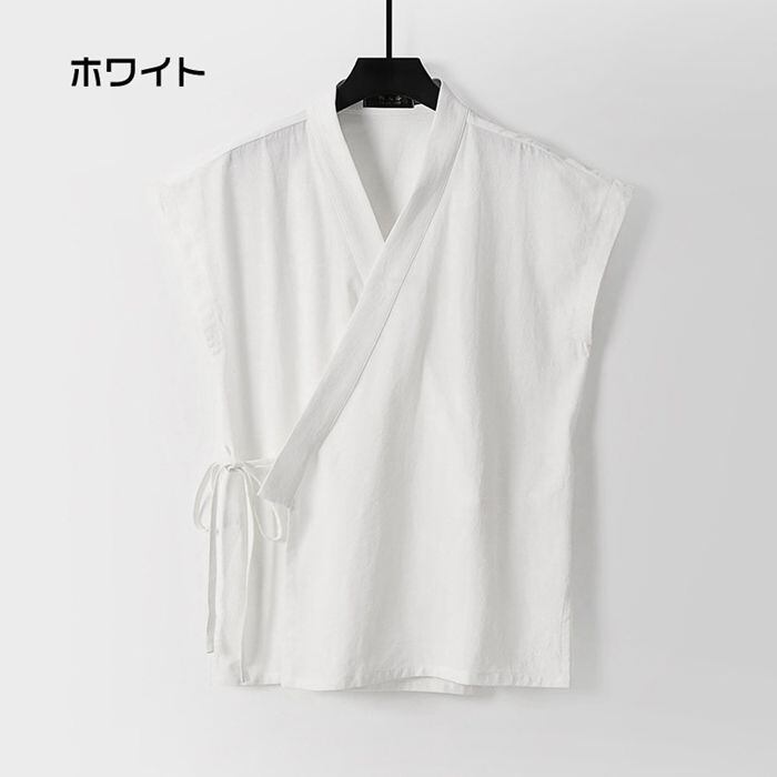甚平 即購入OK タンクトップ ベスト 羽織り カーディガン 2WAY 綿麻 リネンベスト メンズ 袖なし 夏 トップス Vネック 無地 紐付き 通気性 涼しい 柔らかい 喫茶店 服 大きいサイズ ゆったり お祭り 花火大会 父の日 zhishihy02 | オキナ商店