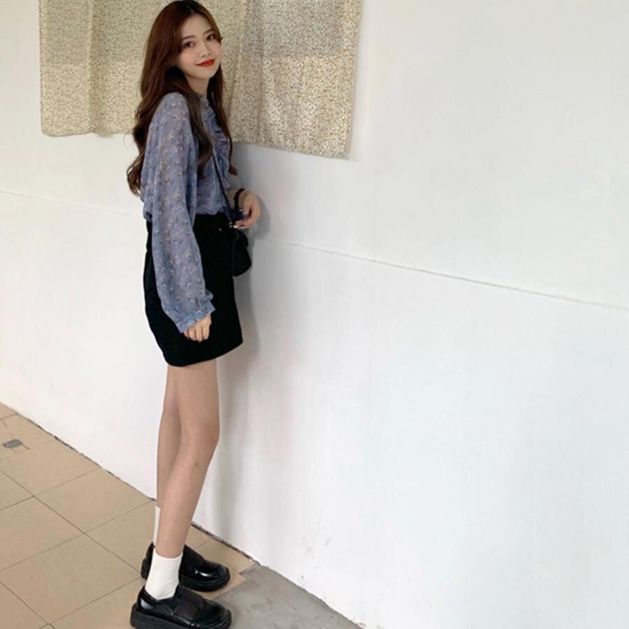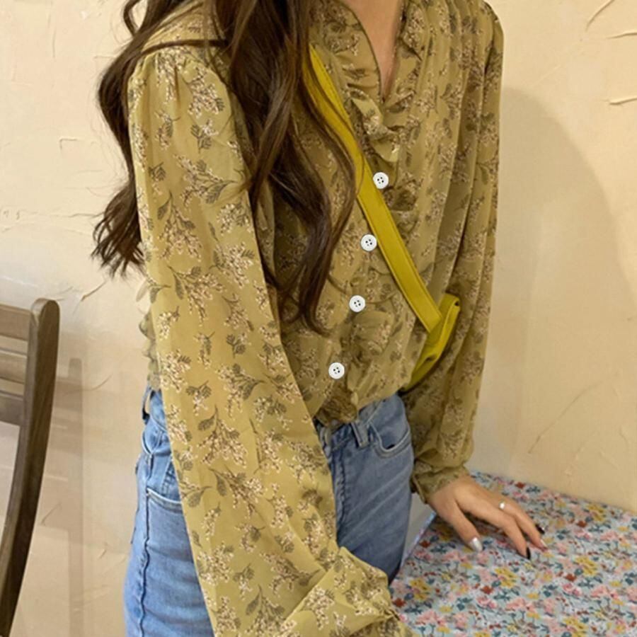 襟フリル シースルー 花柄ブラウス 女性 hyxz82