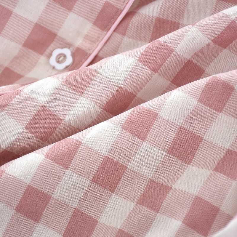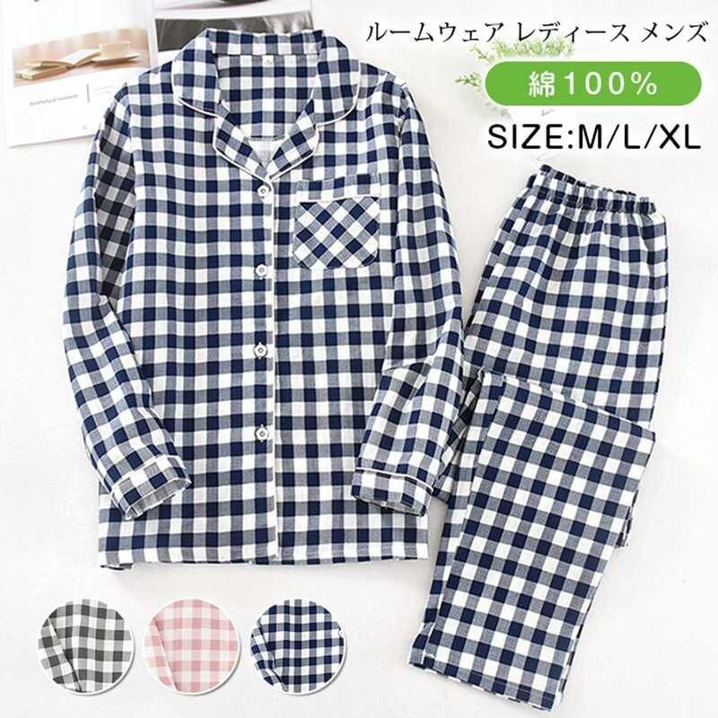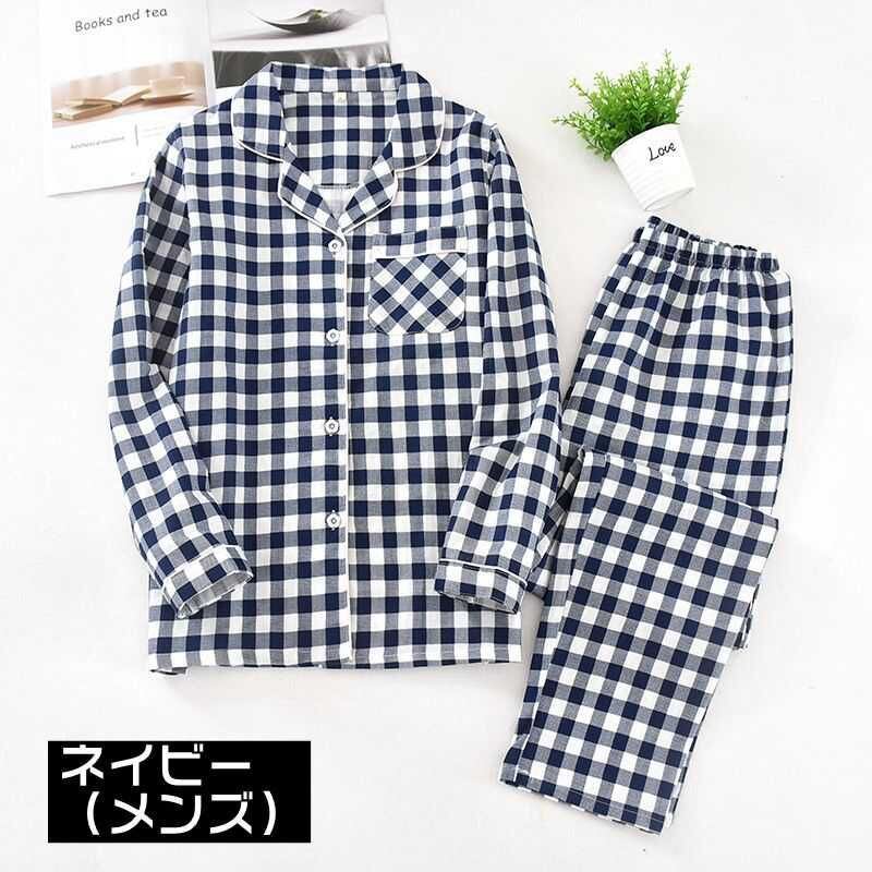 ルームウェア レディース メンズ 上下セット ダブルガーゼ 綿100% チェック柄 パジャマ 柔らか ナイトウェア 部屋着 長袖 ロングパンツ ウエストゴム おしゃれ 寝間着 セットアップ リラックスウェア お揃い プレゼント 春 秋 送料無料 liangyi81
