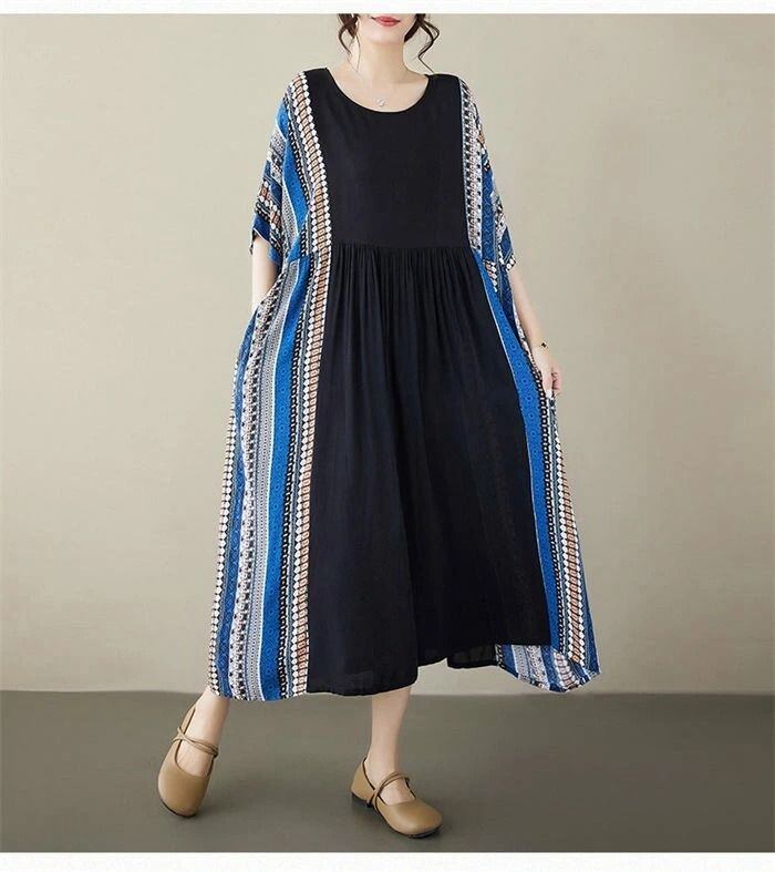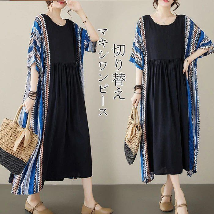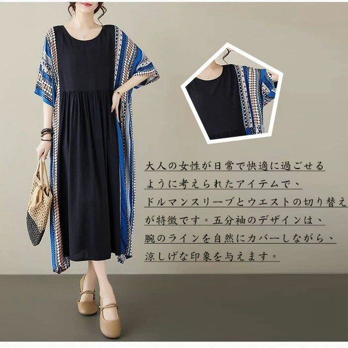 ワンピース マキシワンピース レディース フレア ロングワンピース 夏 半袖ワンピース 切り替え リゾートワンピース ワンピ 五分袖 ロングワンピ 半袖 大きいサイズ ドルマン 大人 春 夏 30代 40代 50代 ゆったりxzzhang394 | オキナ商店