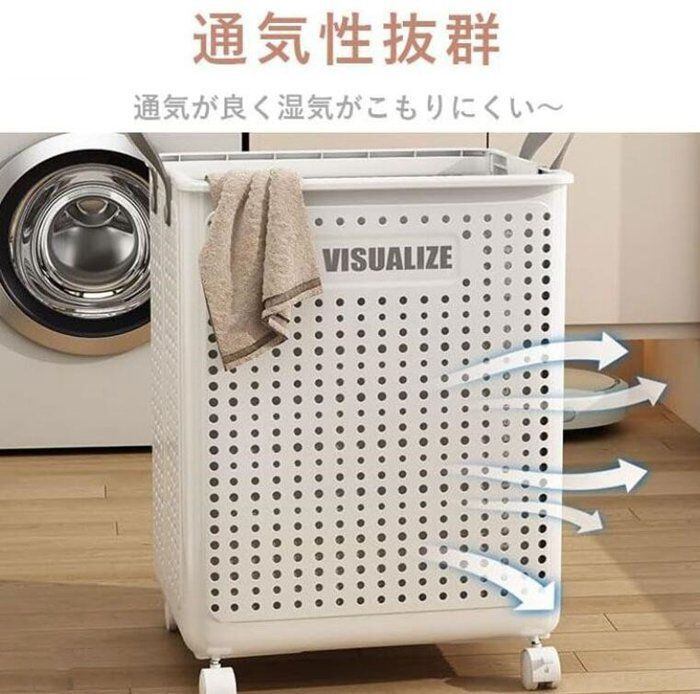 ランドリーバスケット 即購入OK キャスター付き 洗濯かご 折りたたみかご 大容量 おしゃれ 軽量 キャスター 移動籠 キャリーカゴ 北欧 メッシュ 衣類収納バスケット 取っ手付き 片手持ち可能 ban88 | オキナ商店