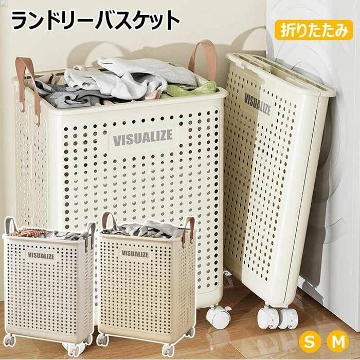 ランドリーバスケット キャスター付き 洗濯かご 折りたたみかご 大容量 おしゃれ 軽量 キャスター 移動籠 キャリーカゴ 北欧 メッシュ 衣類収納バスケット 取っ手付き 片手持ち可能 バス 浴室 洗濯物 コンパクト 省スペース 軽い 収納 小物 おもちゃ スナック入れ S M