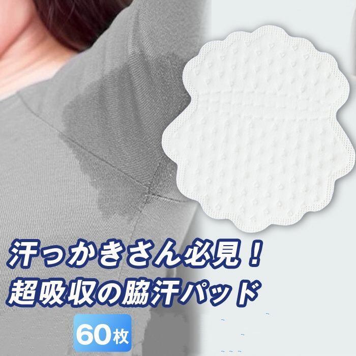 脇汗パッド 清潔脇汗パッド 60枚 汗吸い取りシート オールシーズン 汗脇シート 汗わきパッド 簡単貼り付け 脇汗対策 メンズ レディース 衣類に直貼り 汗取りシート 汗ジミ対策シート 汗染み防止