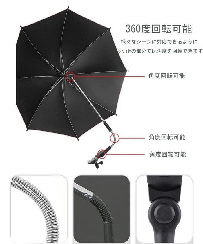 ペットカー傘 ベビーカー用傘 ペット用傘 360度回転可能 ハンドル付き 犬 カート ネコ ベビーカー 晴雨兼用 雨具 日傘 子供パラソル 調整可能 日焼止め 日よけ 防風 ベビーカー 取り付け簡単 熱中症対策