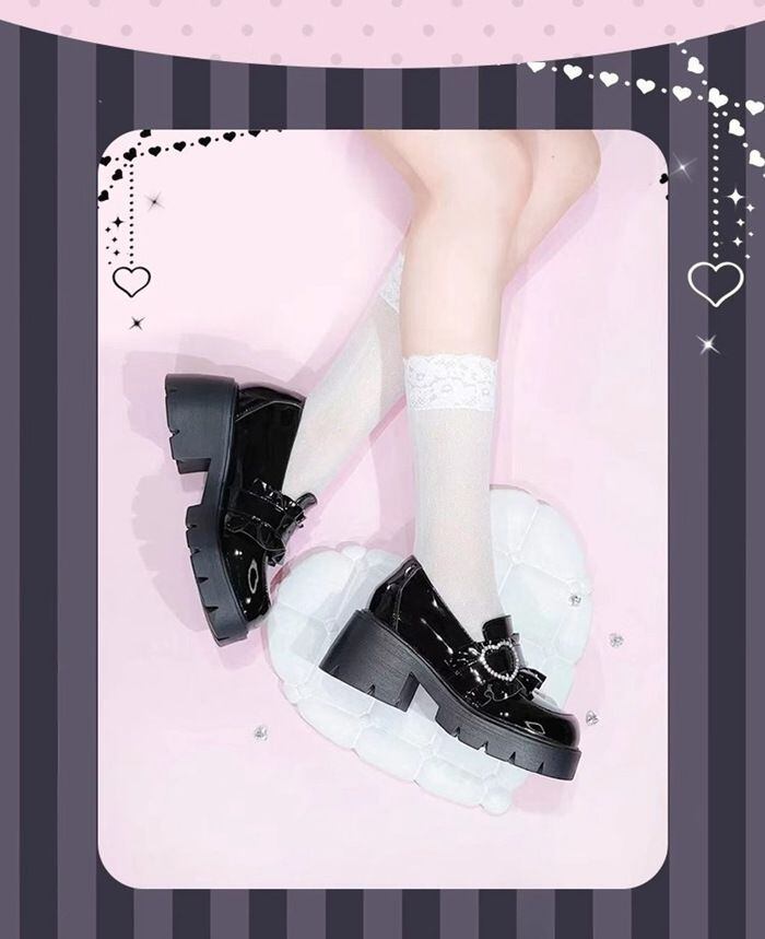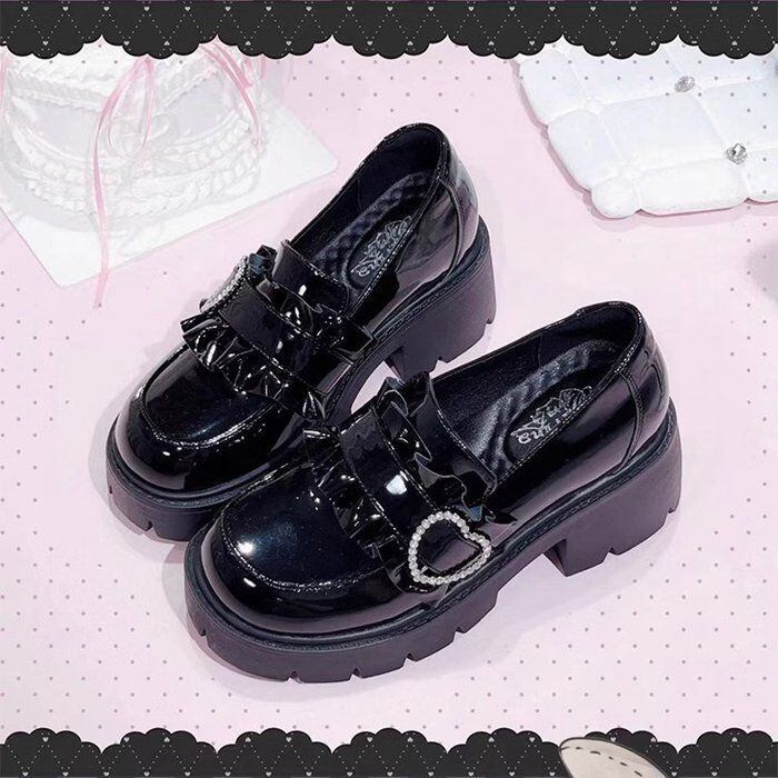 9.5cm 厚底パンプス 量産型 地雷系即購入OK 身長アップ ローファー 太ヒール 厚底 シューズ レディース スリッポン 靴 ロリータ サブカル系 ゴシック ゴス 厚底ローファー パンプス ゴスロリ V系 xiaokb356 | オキナ商店