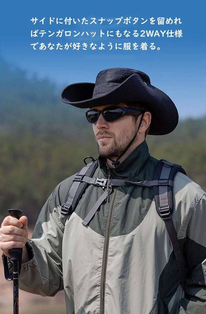 サファリハット 日除け帽子 未使用 メンズ レディース 帽子 ツバ広 UVカット 日焼け防止 超軽量 吸湿速乾 メッシュ 登山 2way 折りたたみ 紫外線対策 釣り ハイキング 登山 フリーサイズ 男女兼用 baoguan1003 | オキナ商店