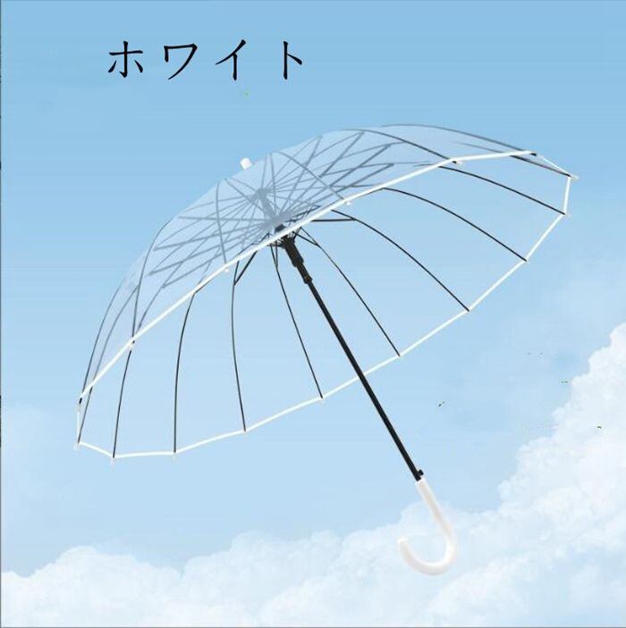 ビニール傘 ワンタッチジャンプ式 自動開 丈夫 長傘 おしゃれ 16本骨 シンプル 無地 軽量 中学生 高校生 カサ クリア 雨傘 透明傘 耐風 折れにくい 梅雨 雨の日対策tms02