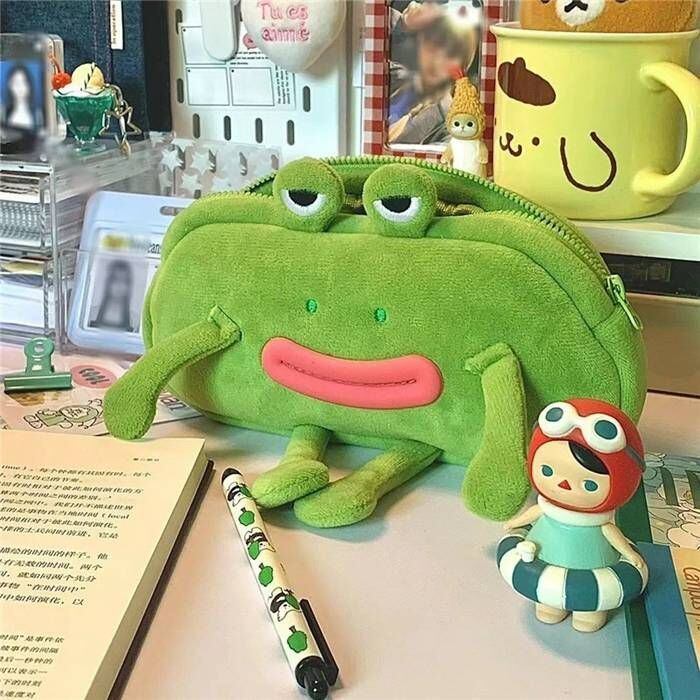 ペンケース もこもこ カエル 蛙 筆箱 筆入れ ペン収納 コスメポーチ 小物入れ 小学生 中学生 高校生 収納ポーチ 軽量 文房具 かわいい おしゃれ 個性的 入学祝い プレゼント ネイル道具 メイクブラシ xzzhang378 | オキナ商店