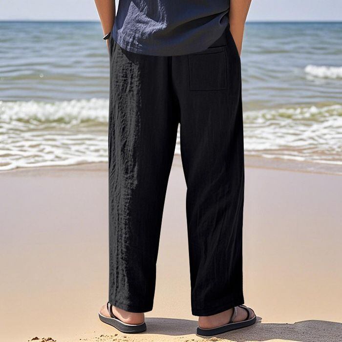 ワイドパンツ メンズ 麻混紡 ロングパンツ 夏 ロング丈 パンツ ウエストゴム 紐 ズボン ボトムス 大きいサイズ ルームウエア 部屋着 ゆったり カジュアル おしゃれ シンプル ギフト 父の日 通気性 yifengyu228 | オキナ商店