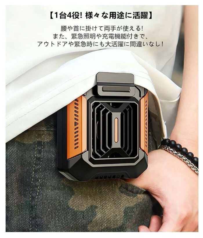 4Way 腰掛け扇風機 即購入OK 首掛け 携帯 ミニ扇風機 小型 4000mAh 大容量 腰掛けファン ポータブルファン USB充電式 3段階風量緊急充電 耐衝撃 防水 防塵 LED懐中電灯xiaokb353 | オキナ商店