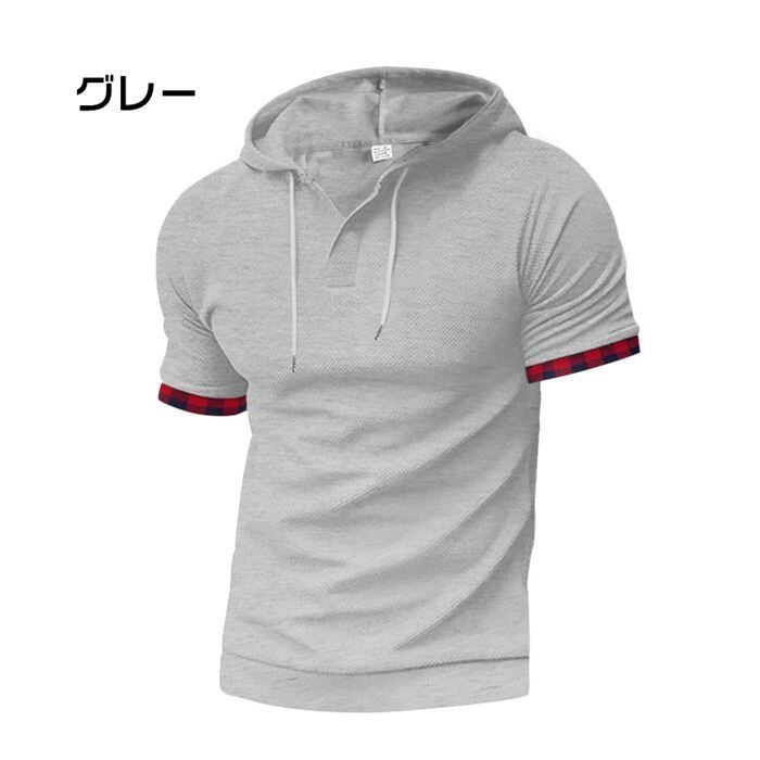 半袖パーカー トップス 未使用 Tシャツフード付き 袖切り替え メンズ 夏 無地 通勤 吸汗速乾 ゴルフウェア フィットネス トレーニングウェア カジュアル 父の日 dongfei35 | オキナ商店