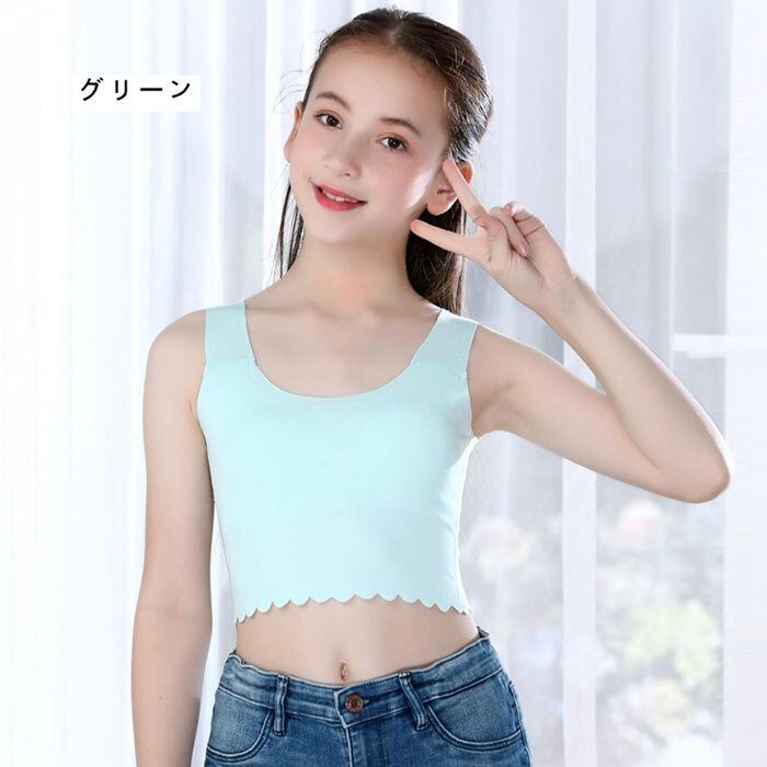 ジュニアインナー 即購入OK 子供 インナー キッズ 取り外しカップ付き タンクトップ ブラ ファーストブラ 女の子 ガール 肌着 綿 胸二重 ダンス ノンワイヤー スポーツブラジャー シームレス ハーフトップ jianqun05 | オキナ商店