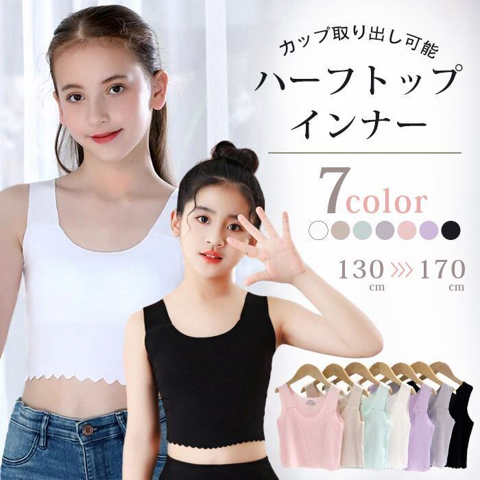 ジュニアインナー 子供 インナー キッズ 取り外しカップ付き タンクトップ ブラ ファーストブラ 女の子 ガール 肌着 綿 胸二重 ダンス ノンワイヤー スポーツブラジャー シームレス ハーフトップ jianqun05