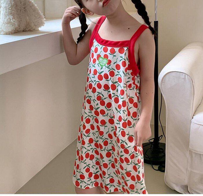 キャミワンピ キッズ キャミソール ワンピース 子供 子ども パジャマ 女の子 ガールズ ジュニア 子供服 夏ワンピ 膝丈 ミディアム aライン 総柄 花柄 おしゃれ 可愛い レトロ カジュアル 涼しい リゾート jianqun03