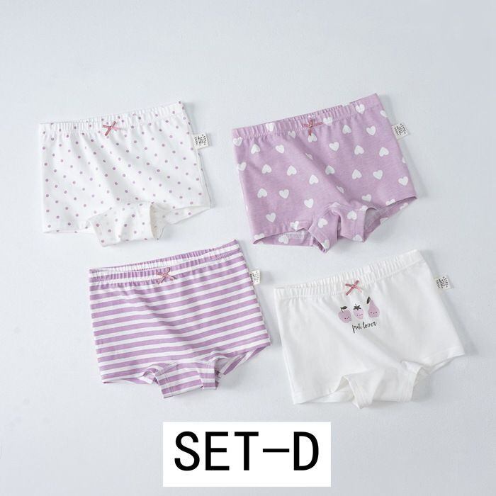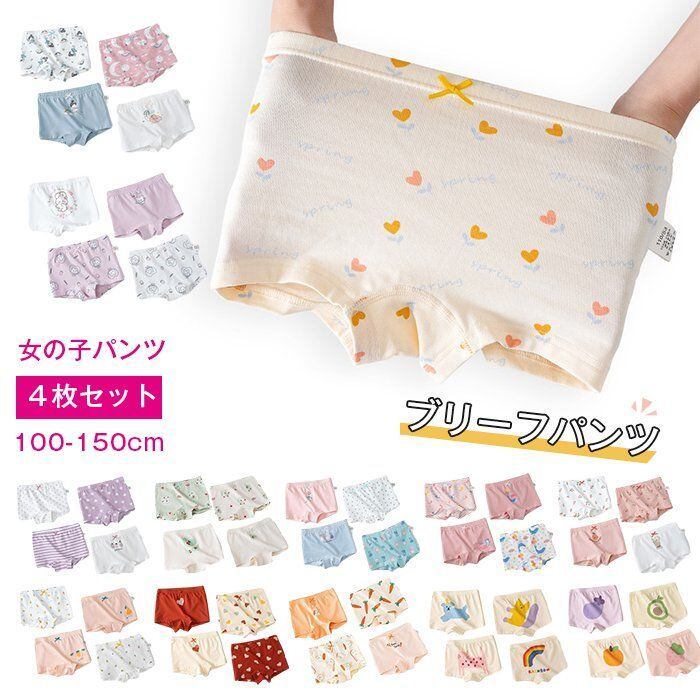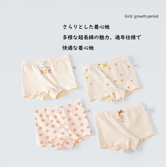 キッズコットンショーツ 4枚セット キッズショーツ 100-150cm ボクサーショーツ 女の子 ブリーフパンツ 綿 子供 女子 下着 パンツ 保育園 幼稚園 小学生 抗菌 通気性 吸湿性 yali04