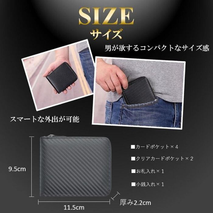 財布 カーボン 二つ折り ラウンドファスナー チャック ジップ メンズ カード入れ 小銭入れ xzxiaoyun416