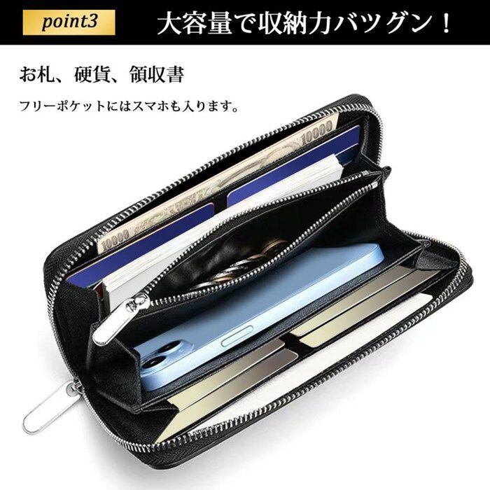 薄い、シンプルで高級感のあるっラウンドファスナーのメンズ長財布