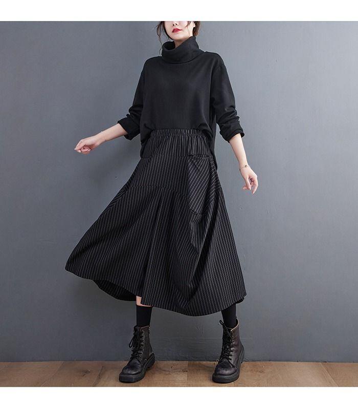スカート風ワイドパンツ スカート風 ドレープ ワイドパンツ 即購入OK 袴パンツ はかまパンツ 未使用 ストライプ柄 メンズ レディース ユニセックス スカート 七分 ゆったり 黒 V系 ダンス オシャレ 個性的 chaoliu411 | オキナ商店