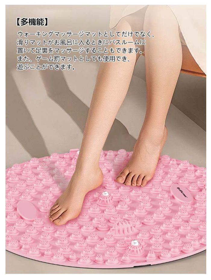 【多機能】ウォーキングマッサージマットとしてだけでなく、滑りマットがお風呂に入るときにバスルームに置いて足裏をマッサージすることもできます。また、ゲーム罰マットとしても使用でき、遊ぶことができます。