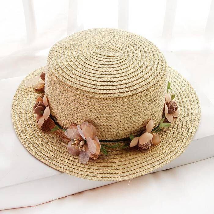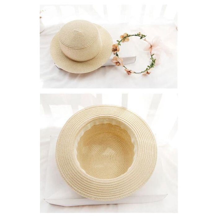 麦わら帽子 つば広ハット 即購入OK レディース フラットトップストローハット 花 リボン 夏 UVカット 帽子 ビーチ 農作業 つば広 uv対策 紫外線対策 折りたたみ 親子帽 hyxz66 | オキナ商店