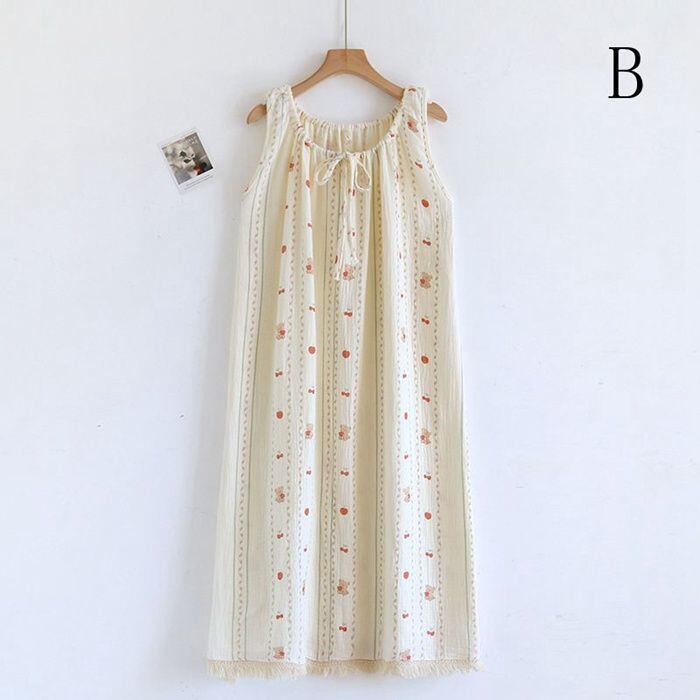 未使用タグ付き ガーゼワンピース ノースリーブ 夏用 マタニティ可 ゆったりサイズ 吸汗速乾 xzxiaoyun404