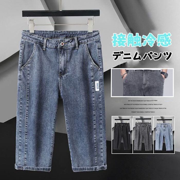 クロップドパンツ 未使用メンズ デニムパンツ 冷感デニム 冷感パンツ 接触冷感 ジーパン Gパン 薄手 涼しいパンツ 7分丈 ジーンズ ボトムス カジュアル 夏 夏物 chenyu20 | オキナ商店