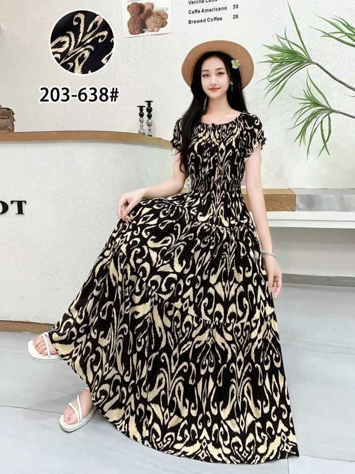 レディース 花柄 ワンピース オフショルダー 即購入OK ロング丈 ロングワンピース マキシ丈 クルーネック 夏 半袖 薄手 ゆったり 大人可愛い 体型カバー 総柄 カジュアル きれいめ おしゃれ リゾート 旅行 | オキナ商店