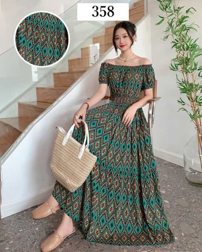 ワンピース レディース 花柄 オフショルダー 即購入OK ロング丈 ロングワンピース マキシ丈 クルーネック 夏 半袖 薄手 ゆったり 大人可愛い 体型カバー 総柄 カジュアル きれいめ おしゃれ リゾート 旅行 guwei04 | オキナ商店