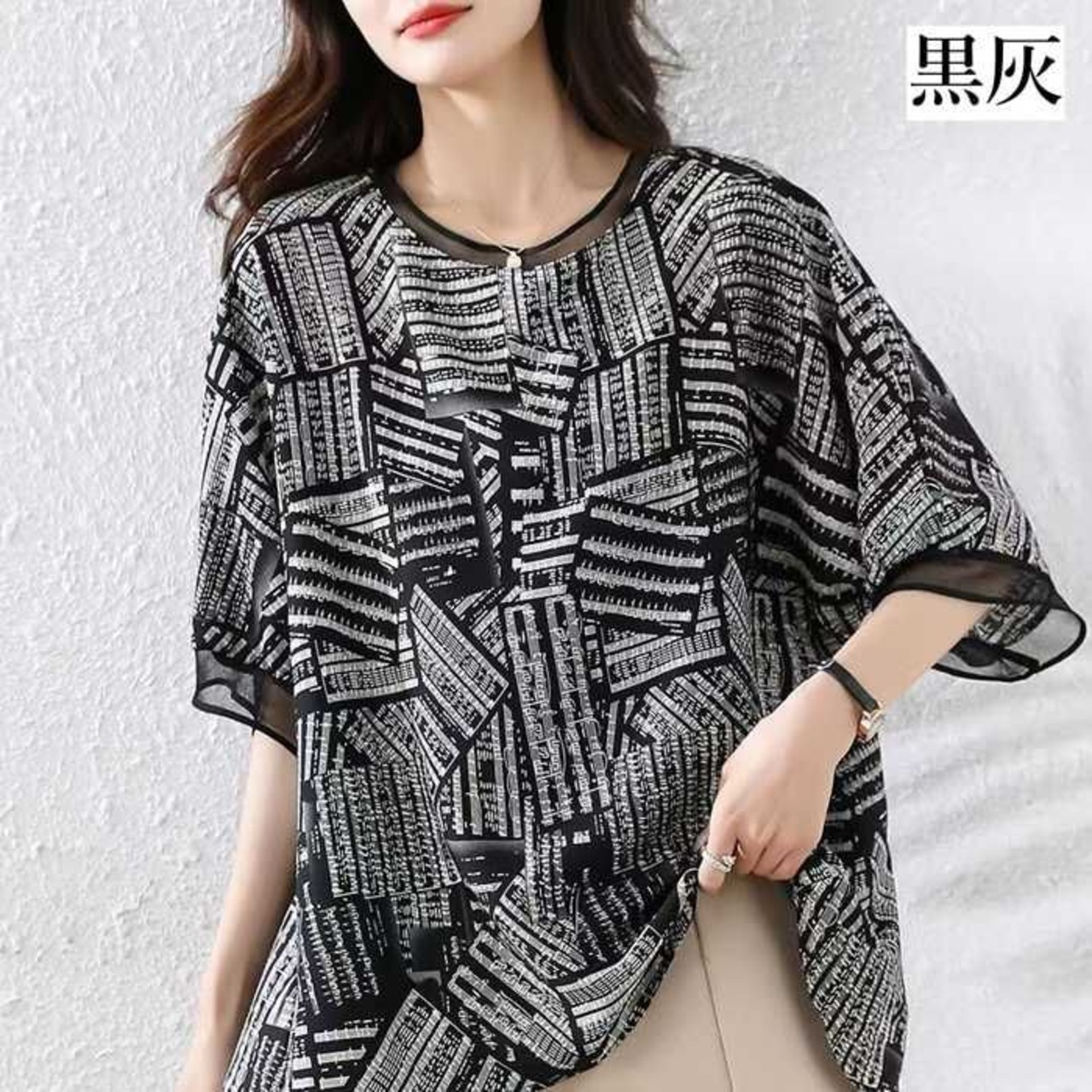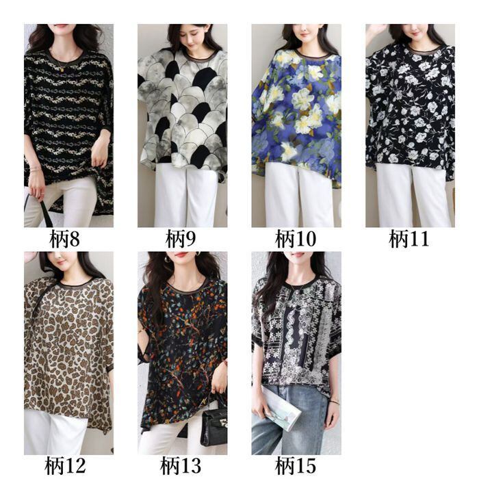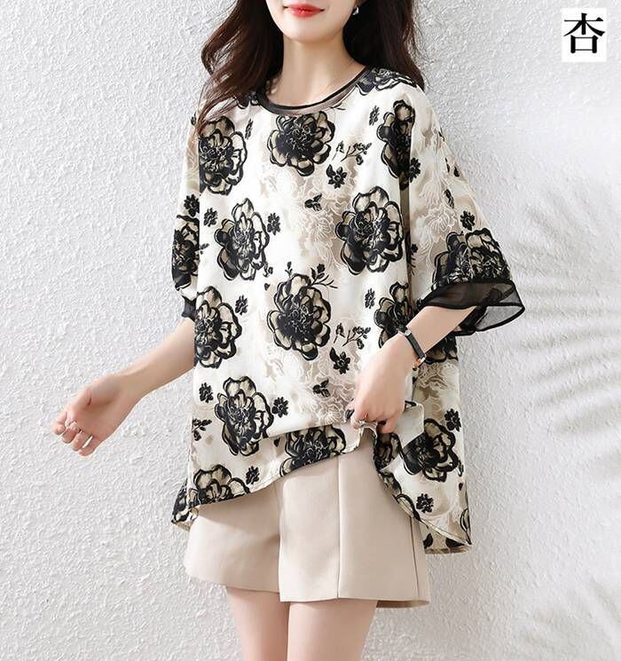 Tシャツ レディース 花柄 即購入OKチュニック プルオーバー クルーネック 夏 5分袖 半袖 トップス 薄手 透け感 シアー ゆったり 大人可愛い お尻が隠れる 体型カバー 水玉柄 総柄 カジュアル きれいめ おguwei03 | オキナ商店