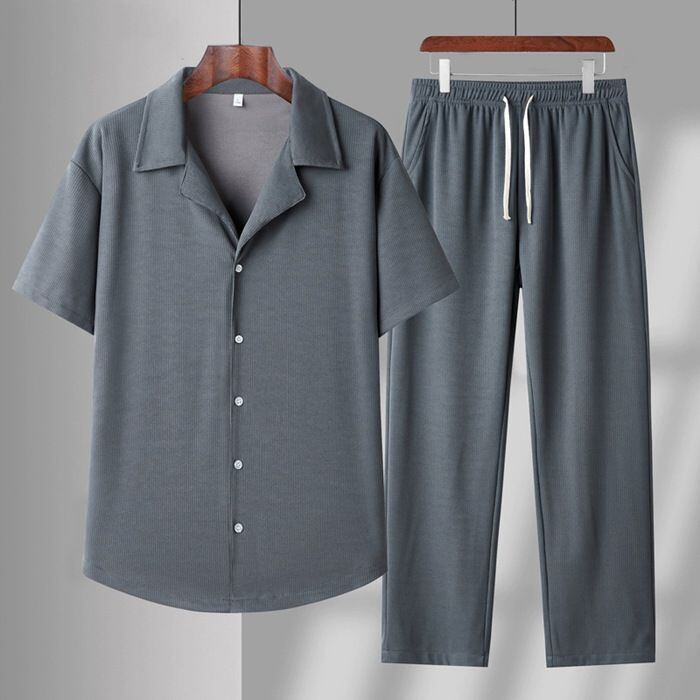 上下セット 大きいサイズ セットアップ 即購入OK メンズ 未使用 父の日 シャツ ロングパンツ ゆったり 快適 無地 薄手 夏用 夏 夏服 普段着 運動着 上下セット ジャージメンズファッション majiyi04