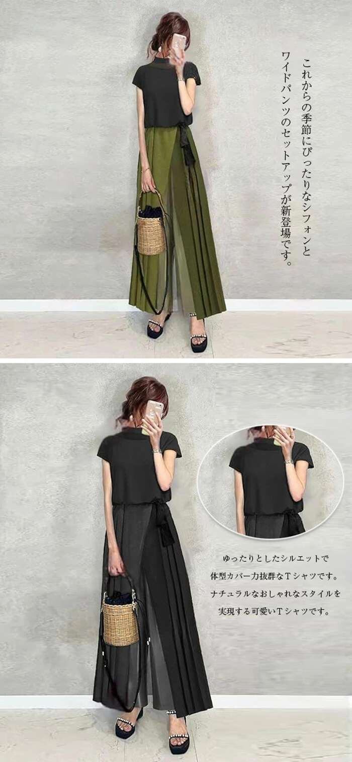 これからの季節にぴったりなシフォンとワイドパンツのセットアップが新登場です。ゆったりとしたシルエットで体型カバー力抜群なtシャツです。