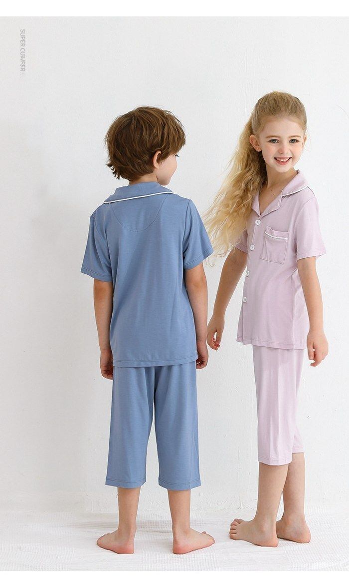 キッズ パジャマ 半袖 ルームウエア 上下セット 子供服 肌に優しい 接触冷感 前開き 春 夏 子供 男子 涼しい 薄手 前ボタン 部屋着 かわいい 子供パジャマ サッカー素材 肌に優しい 七分丈パンツ おそろい ゴムウェア 女子 ジュニア こども服 快適keaiduoxz04